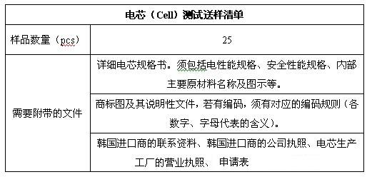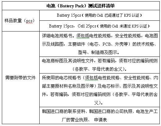 1. 此文件仅适用于锂电池进行韩国KPS认证。